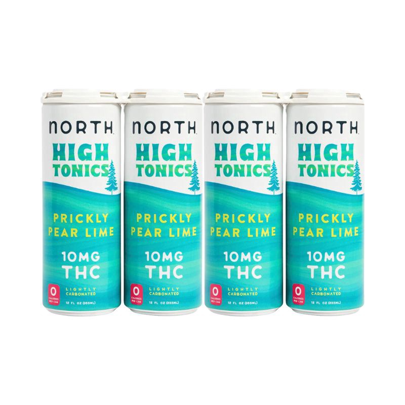 NORTH CANNA High Tonics Prickly Pear Lime 10 mg THC 4 Pack offers a unique and refreshing flavor combination, blending the sweet notes of prickly pear with the zesty tang of lime, all infused with hemp-derived THC for a lift.