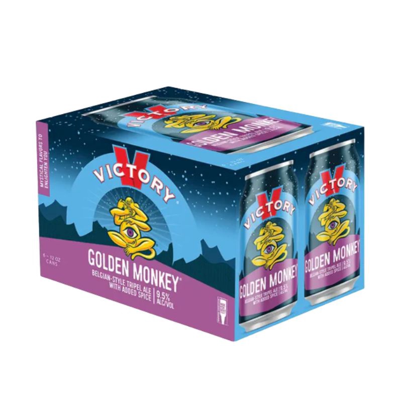 VICTORY Golden Monkey 6 Pack 12 oz Cans refers to a 6-pack of 12-ounce cans of Golden Monkey, a Belgian-style Tripel ale brewed by Victory Brewing Company. Tripel ales are known for their golden color, high alcohol content, and complex flavors with notes of fruit, spice, and malt. Golden Monkey is one of Victory’s most popular and well-regarded beers.